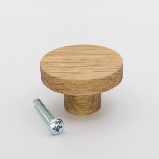 40mm Round Oak Knob Tapered