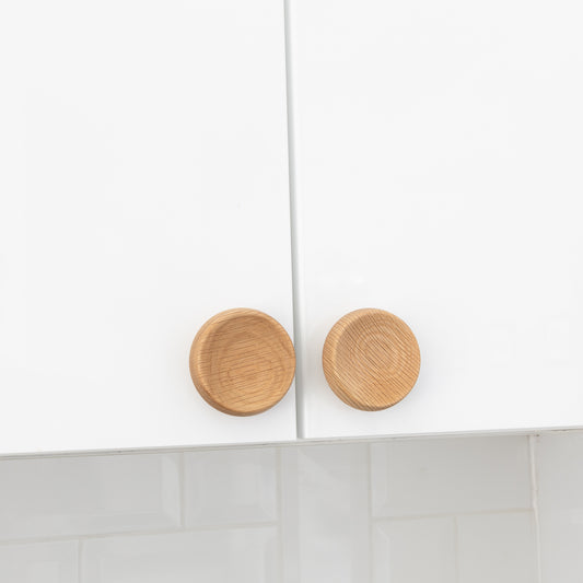 Round Solid Oak Concaved Knob for Cabinet Doors and Drawers 67mm