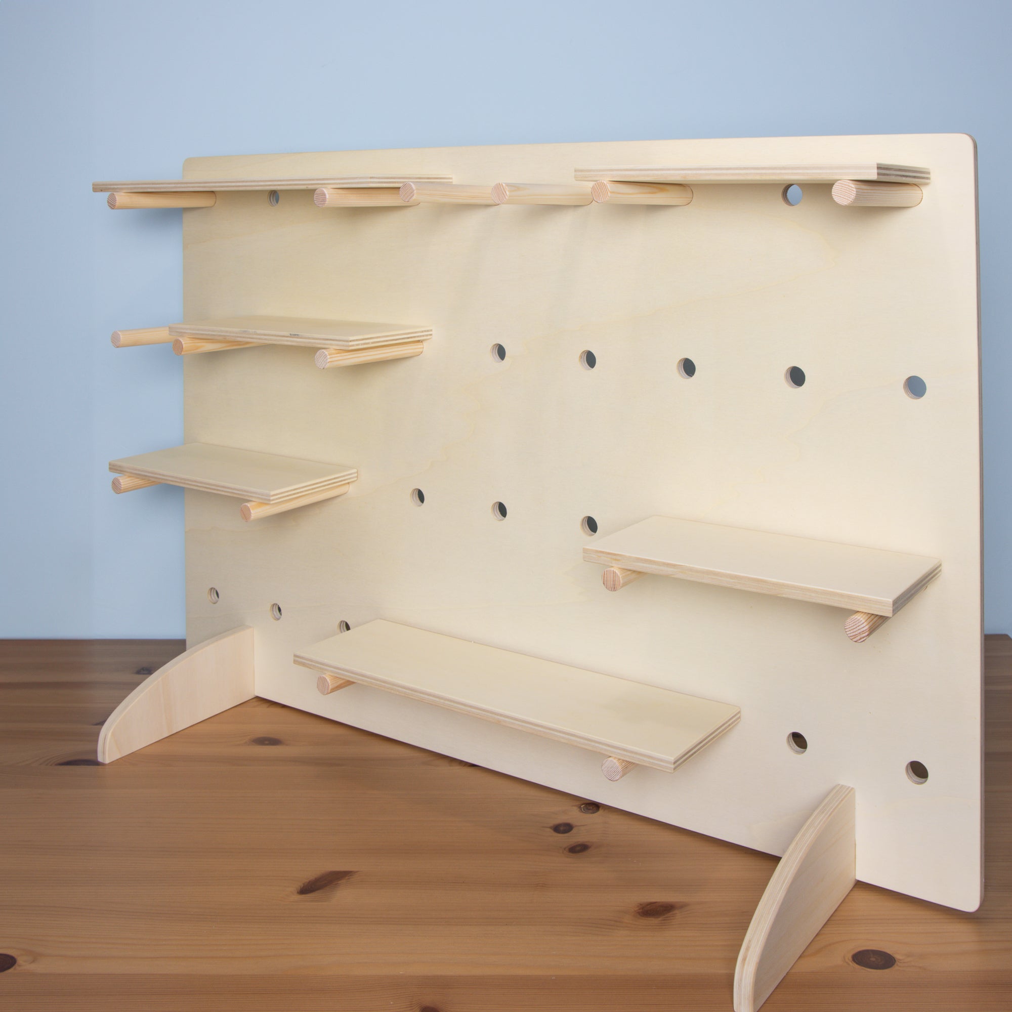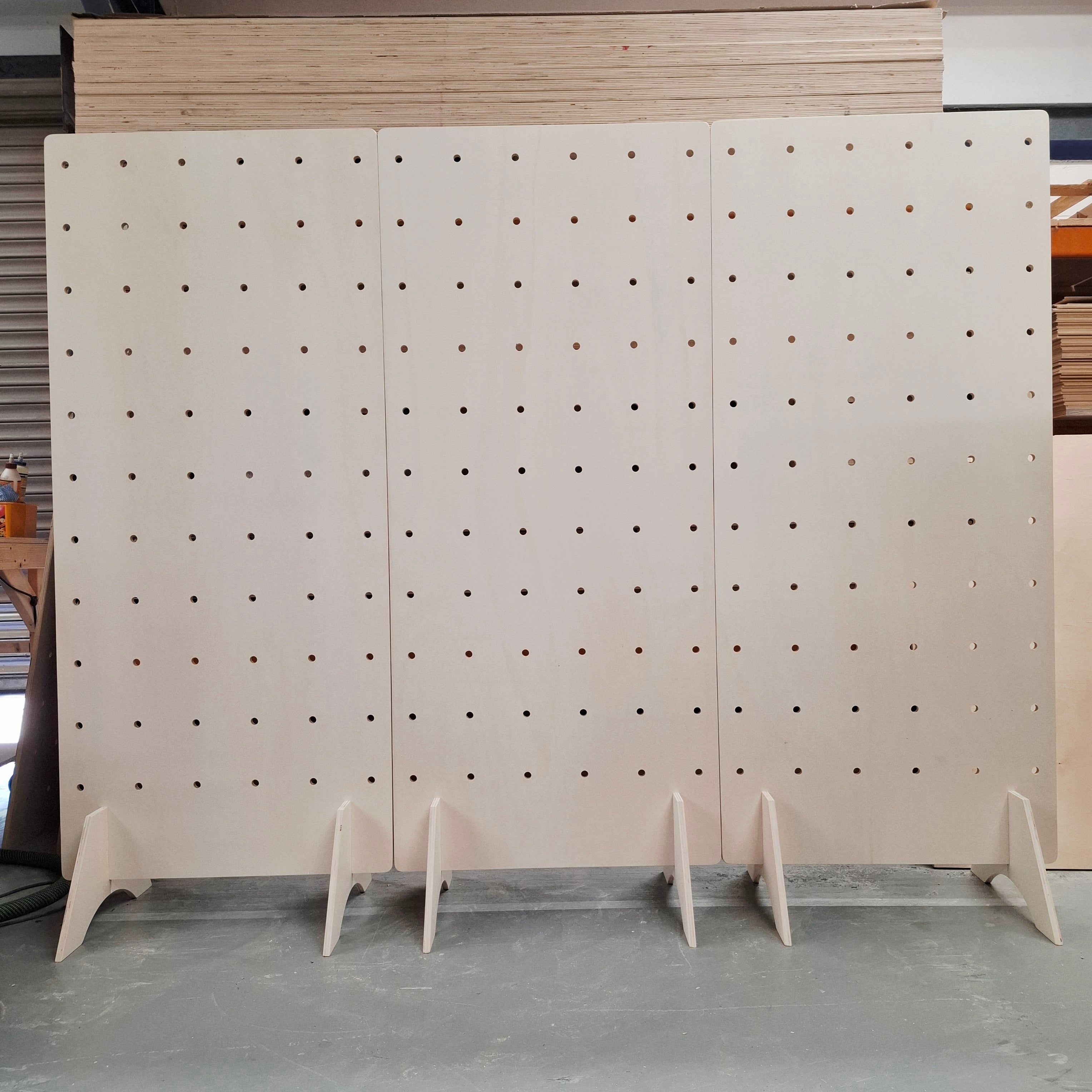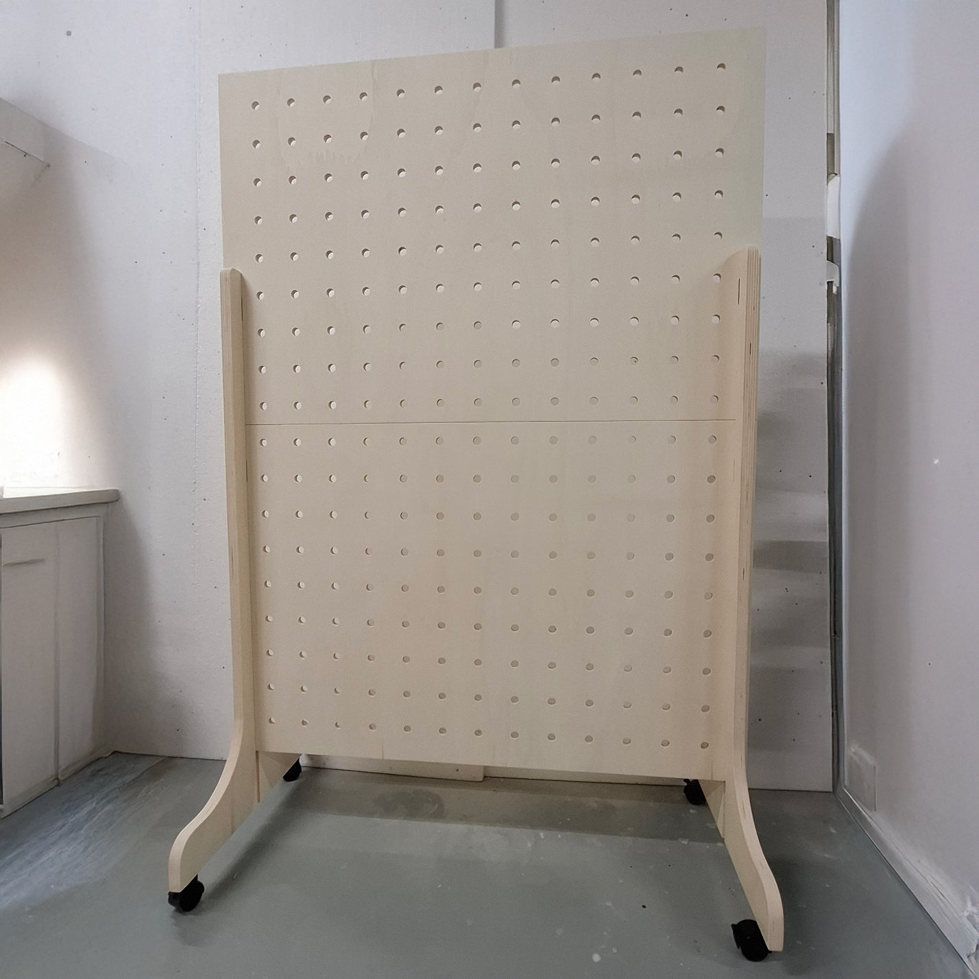 All stands are handcrafted from high-quality sustainable poplar plywood, chosen for its strength, light weight, and smooth finish. The pegboard is coated with a clear, durable, non-toxic wood finish.